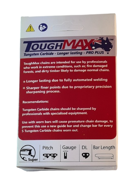 ToughMax Chains; without sharpening will cut 5,000kg-15,000kg wood (equivalent to 10 sharpening's).  This results in a massive productivity increase for professional woodcutters.