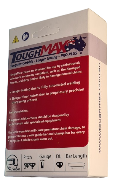 ToughMax Chains; without sharpening will cut 5,000kg-15,000kg wood (equivalent to 10 sharpening's).  This results in a massive productivity increase for professional woodcutters.